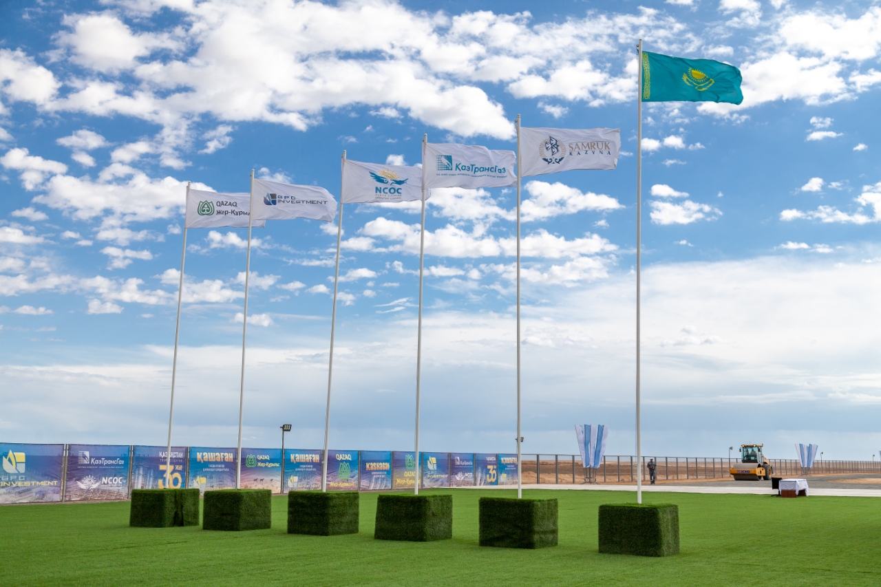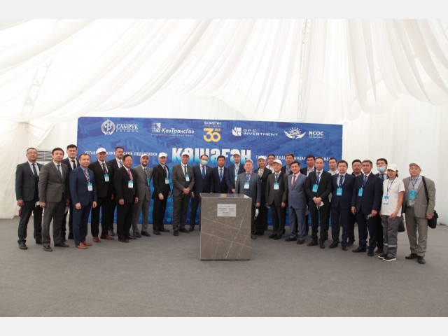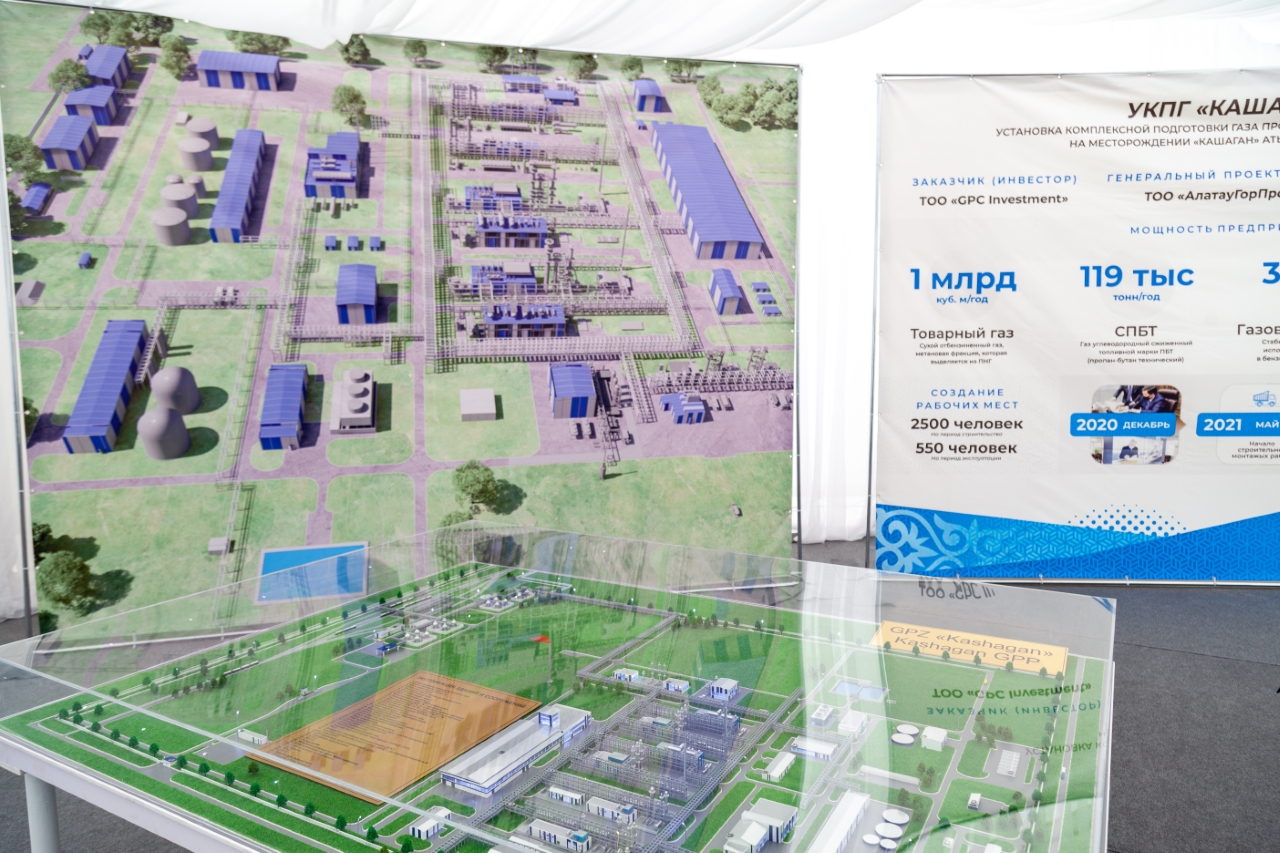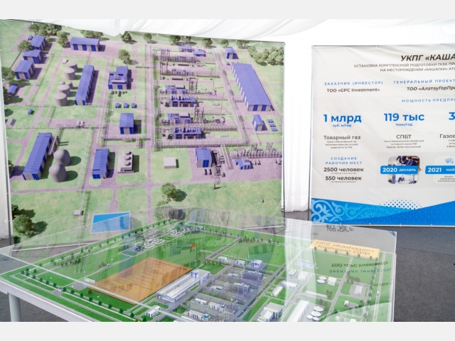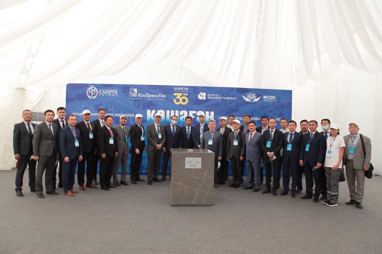 Глава правительства Аскар Мамин, аким Атырауской области Махамбет Досмухамбетов, министр энергетики Нурлан Ногаев, председатель правления АО «КазТрансГаз» Кайрат Шарипбаев, управляющий директор NCOC Оливье Лазар и представители ТОО «GPC Investment» заложили на месте начала строительства завода символическую капсулу времени для будущего поколения.